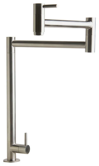 The perfect mix of traditional design and modern style. This sleek pot filler faucet by ALFI brand is produced with true AISI 304 Stainless Steel which prevents release of most common heavy metals such as lead, copper, and zinc in your water. Rest assured, not only will this faucet add the finishing touch to your kitchen decor; it also achieves proper ANSI/NSF standards in design and water safety.