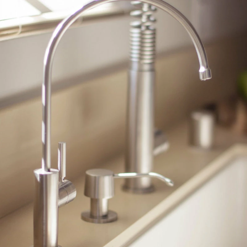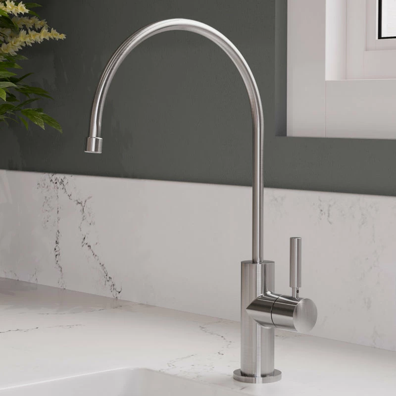 LEON kitchen faucets by ALFI brand are made of solid stainless steel, unlike traditional faucets which are made out of brass and treated to created different finishes. These faucets are built tough and made to last for decades, both durability and looks.