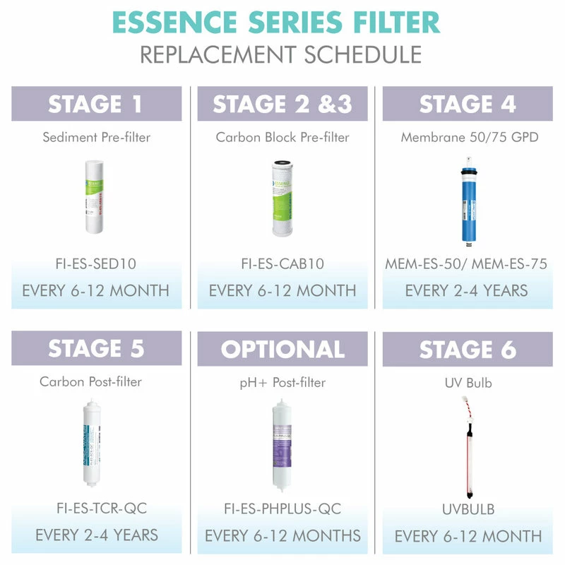 - APEC Essence 75 GPD pH 6-stage complete filter set for all standard under the counter RO systems
