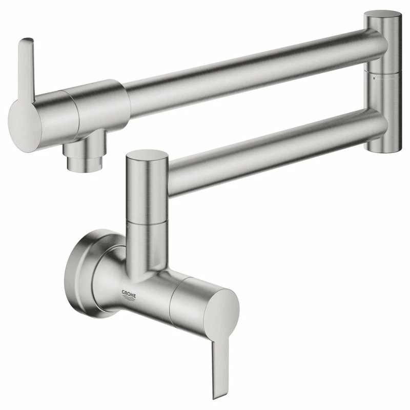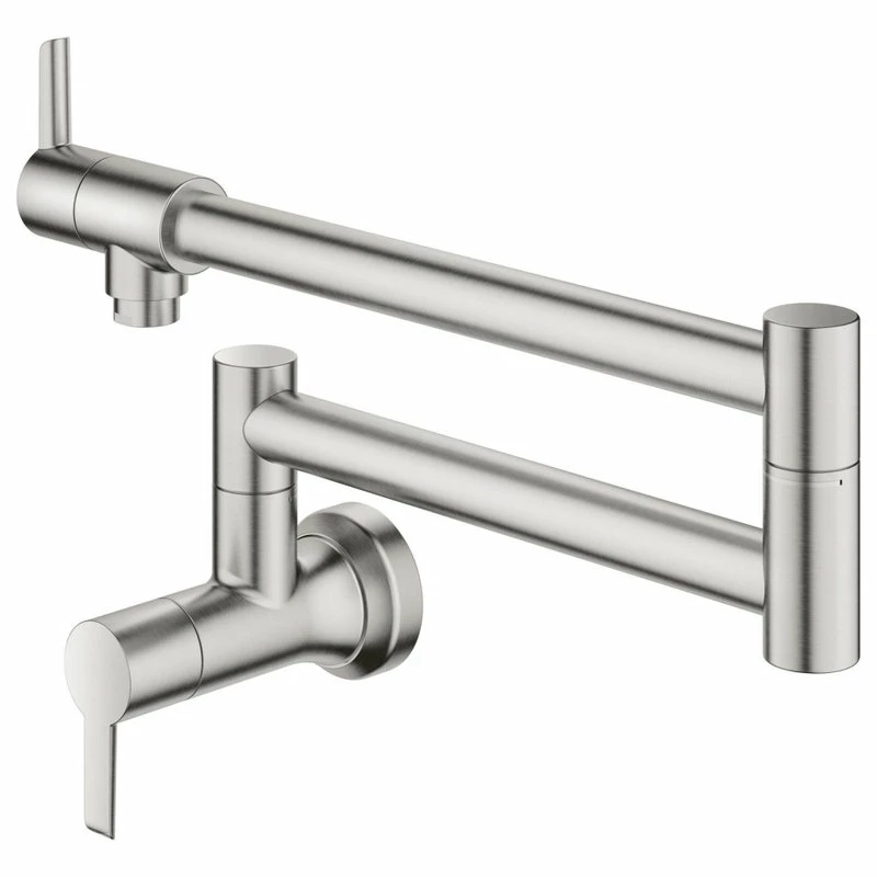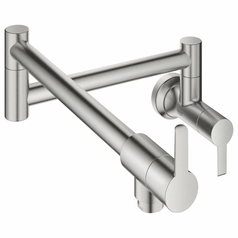 Installed on the wall over your stovetop, the GROHE Zedra Pot Filler Faucet adds sophistication and convenience in today’s home. This sleek, contemporary, cold-water faucet eliminates the need to carry heavy water-filled pots from sink to stove. Jointed arm pivots out to easily reach each burner and tucks back against the wall when not in use. Two-handle on/off operation is double protection from leakage, especially important when mounted over the stovetop. Finished with GROHE StarLight, GROHE Zedra ensures wipe-clean ease from splatters and maintains its luster for life. GROHE Zedra is the new name for Ladylux L2.