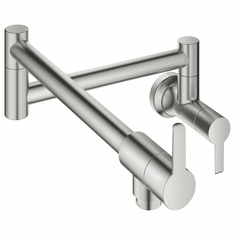 Installed on the wall over your stovetop, the GROHE Zedra Pot Filler Faucet adds sophistication and convenience in todayβs home. This sleek, contemporary, cold-water faucet eliminates the need to carry heavy water-filled pots from sink to stove. Jointed arm pivots out to easily reach each burner and tucks back against the wall when not in use. Two-handle on/off operation is double protection from leakage, especially important when mounted over the stovetop. Finished with GROHE StarLight, Zedra ensures wipe-clean ease from splatters and maintains its luster for life. GROHE Zedra is the new name for Ladylux L2.