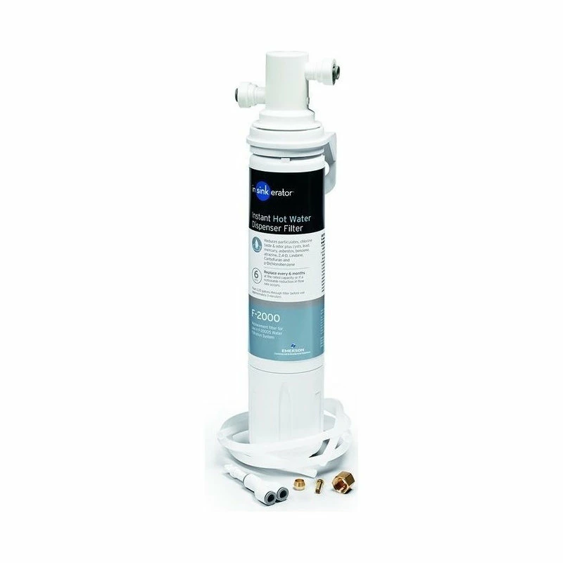 The F-2000S Water Filtration System Plus is designed for exclusive use with InSinkErator water dispensing systems. It reduces particulates, chlorine taste and odor, plus cysts, lead, mercury, and other impurities allowing you to enjoy better-tasting hot beverages. It has a 1/4 in. quick-connect fitting and is replaced easily without contact with used filter material.