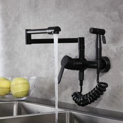 Best Sale π Homary Retractable Wall-mounted Pot Filler Matte Black Kitchen Faucet With Spray π