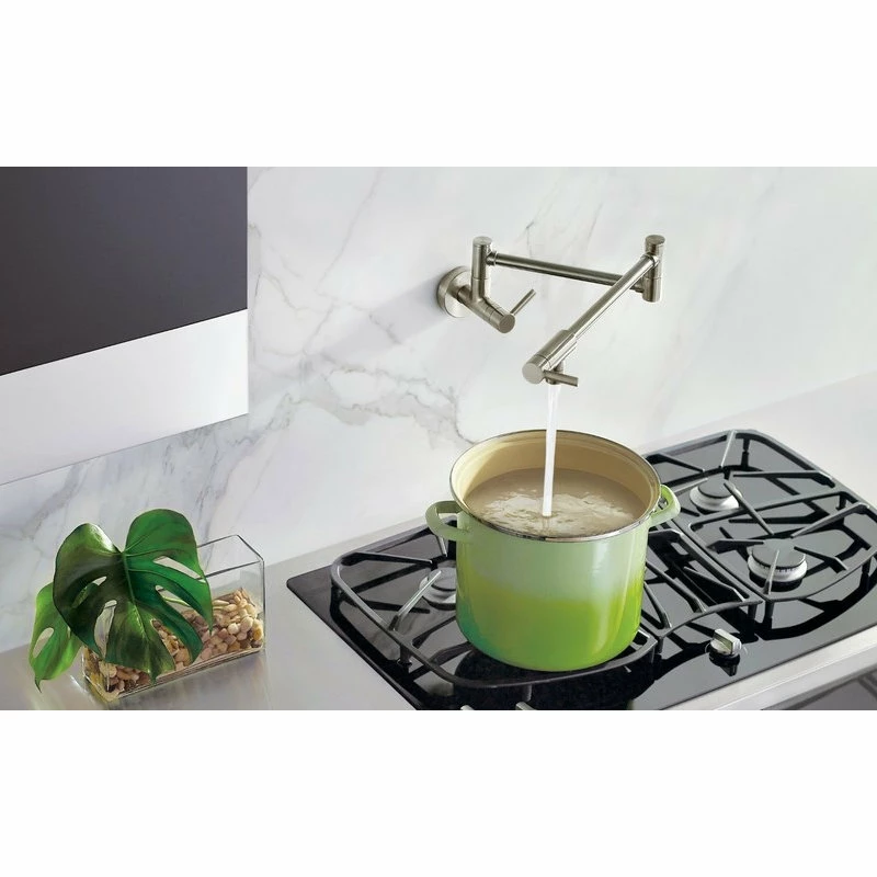 The pot filler is the ultimate epicurean luxury, ensuring convenient flow control over a cooktop. Dual joints allow for maximum reach, and dual shut-off valves mean never reaching over a hot surface to turn it off. Choose from traditional or modern styles to coordinate with your decor.