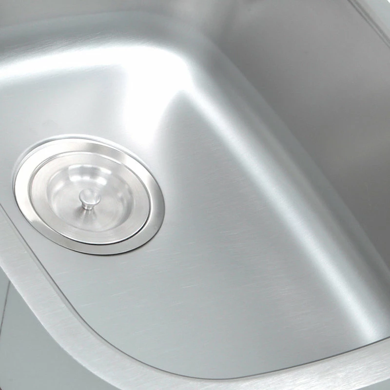 - This sink is crafted from 304 stainless steel in a lustrous satin finish.