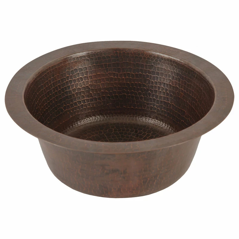 12″ Round Hammered Copper Bar Sink with a 2″ Drain Opening Features: