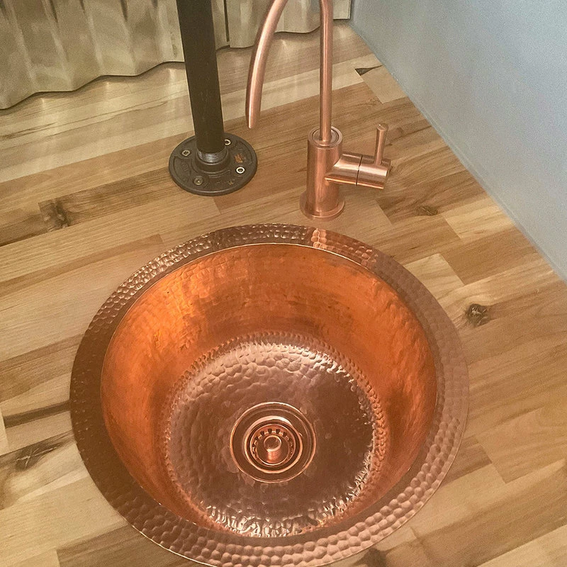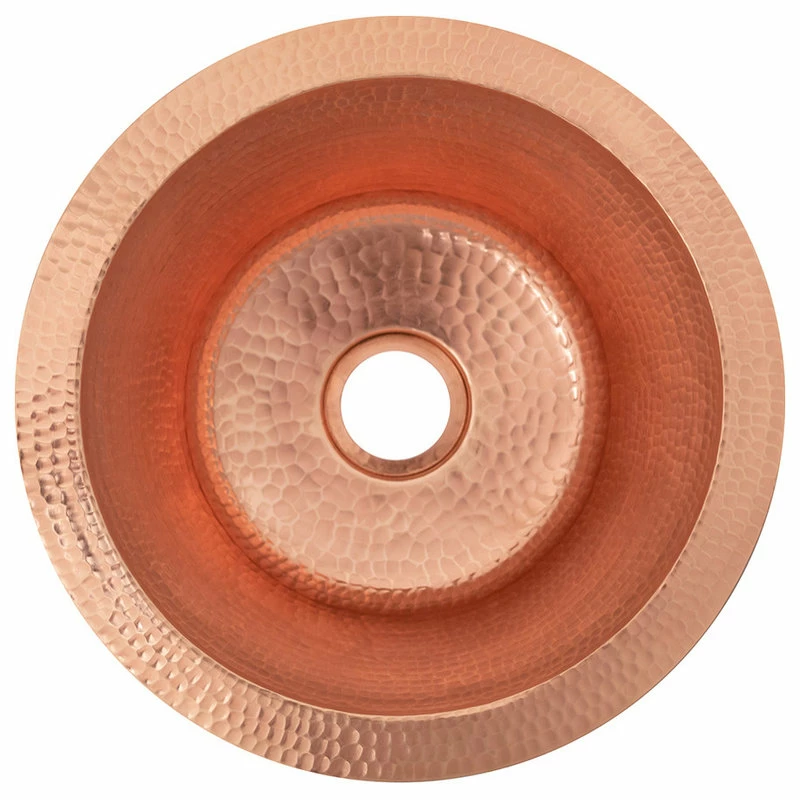 12″ Round Hammered Copper Bar Sink with 2″ Drain Opening in Polished Copper Features: