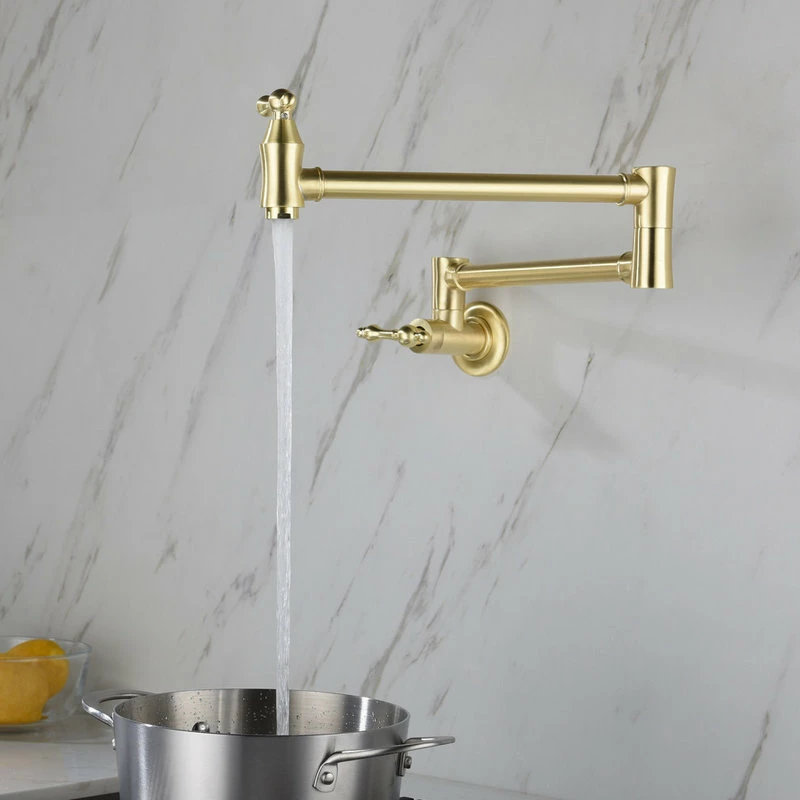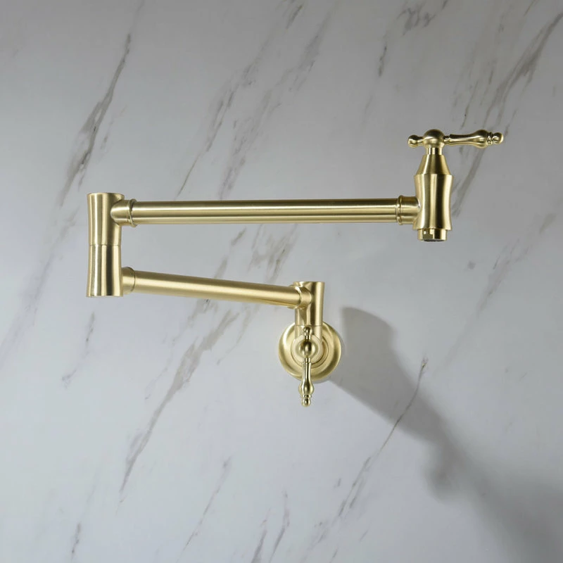 Wall Mount Pot Filler Kitchen Faucet offers the most aesthetic and hygienic faucet available. Dual shut-off on the Pot Filler faucet allows you to turn the water off at either the wall or the spout, controlling the water flow at the point of use. Dual swing joints allow the pot filler to easily fold away when not in use and with the simple on and off with a quarter turn of the handle.