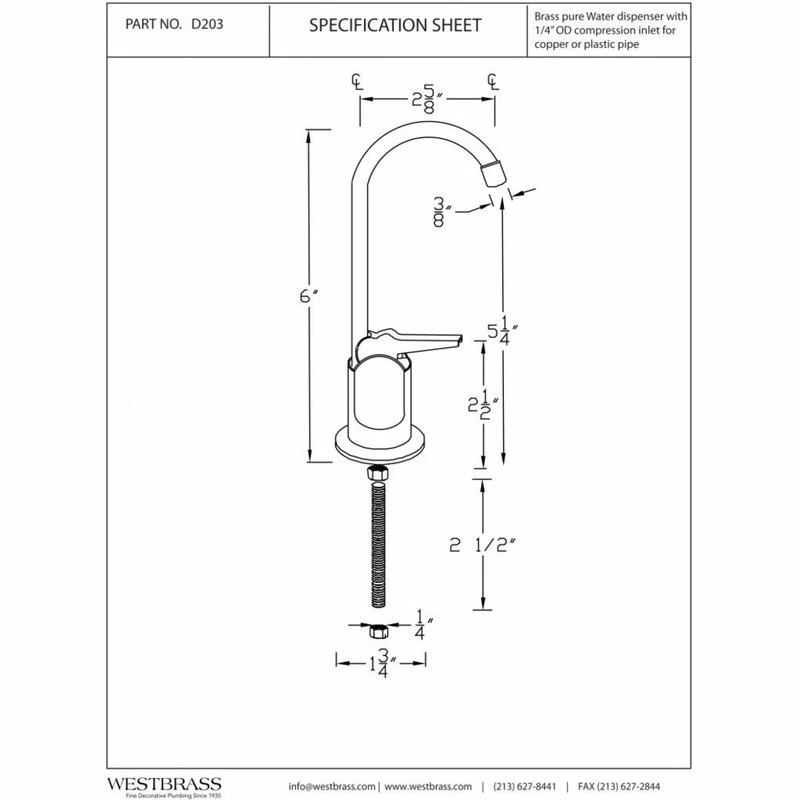 The Westbrass Touch-Flo Style, 6 in. pure water dispenser with mid-arc spout, and piston handle, is a stylish and functional addition to any kitchen. Hook up to a water filter, instant water chiller or even directly to your cold tap to provide a simple, easy-to-use water delivery system. Available in a variety of decorative finishes, this item is sure to complement your existing fixtures.