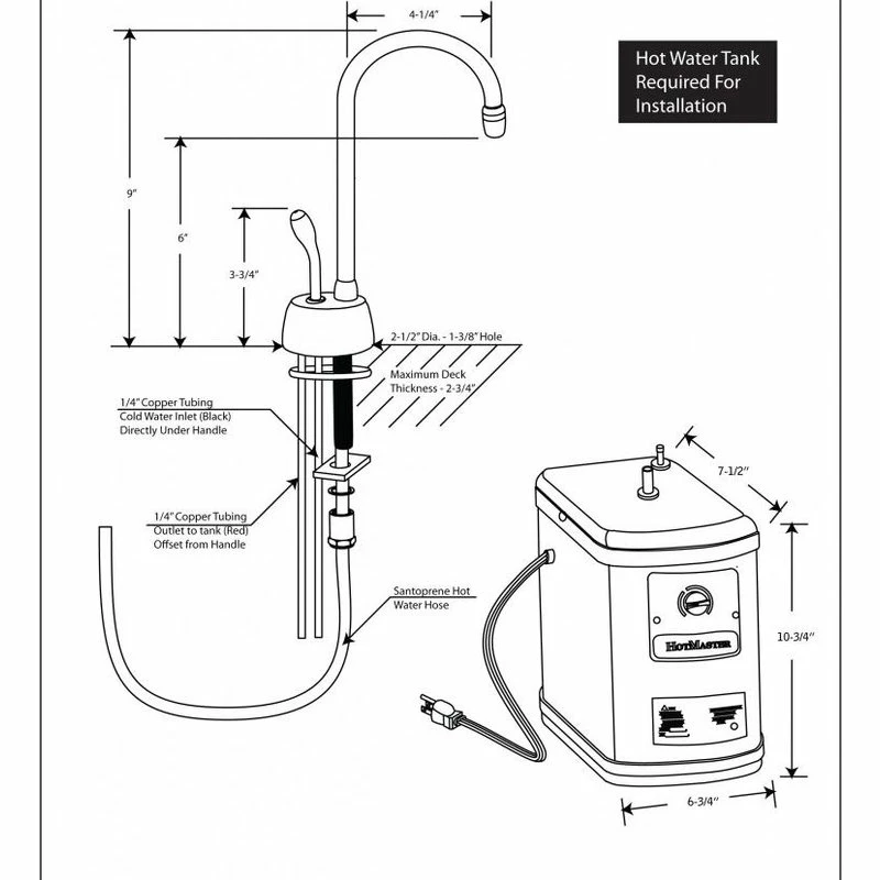 The Westbrass Velosah Single-Handle Hot Water Dispenser Faucet Kit with tank, offers quick and easy water control and its single handle automatically turns off hot water for your safety. The faucet features a high-arc spout for an attractive appearance. A QHT 1300W instant hot water tank, plugs into 120V and is included with this faucet. Mounting materials are included for convenient, single-hole installation.